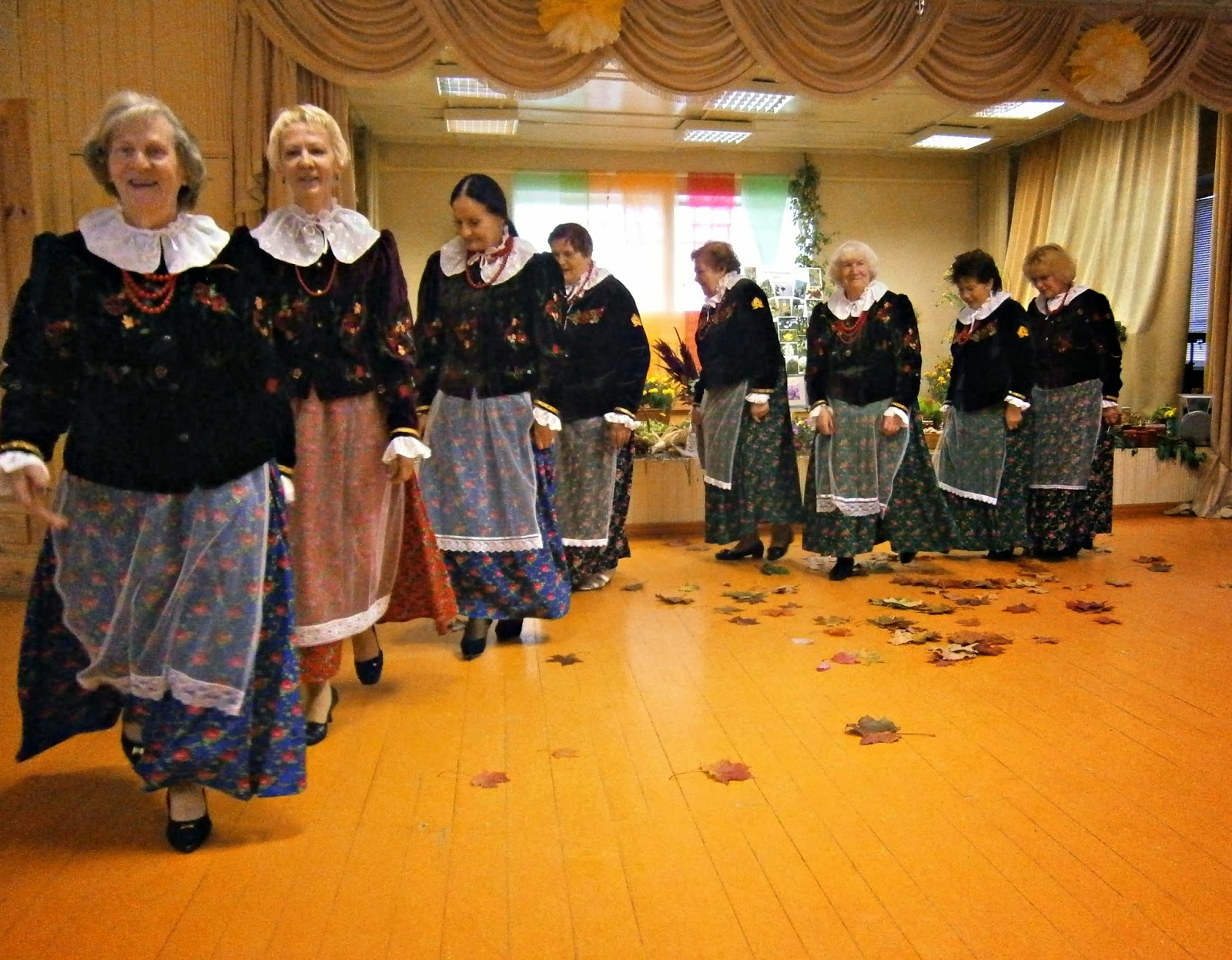 "Родаци" танцевали, пели, в конце песни осыпали зал яркими осенними листьями...